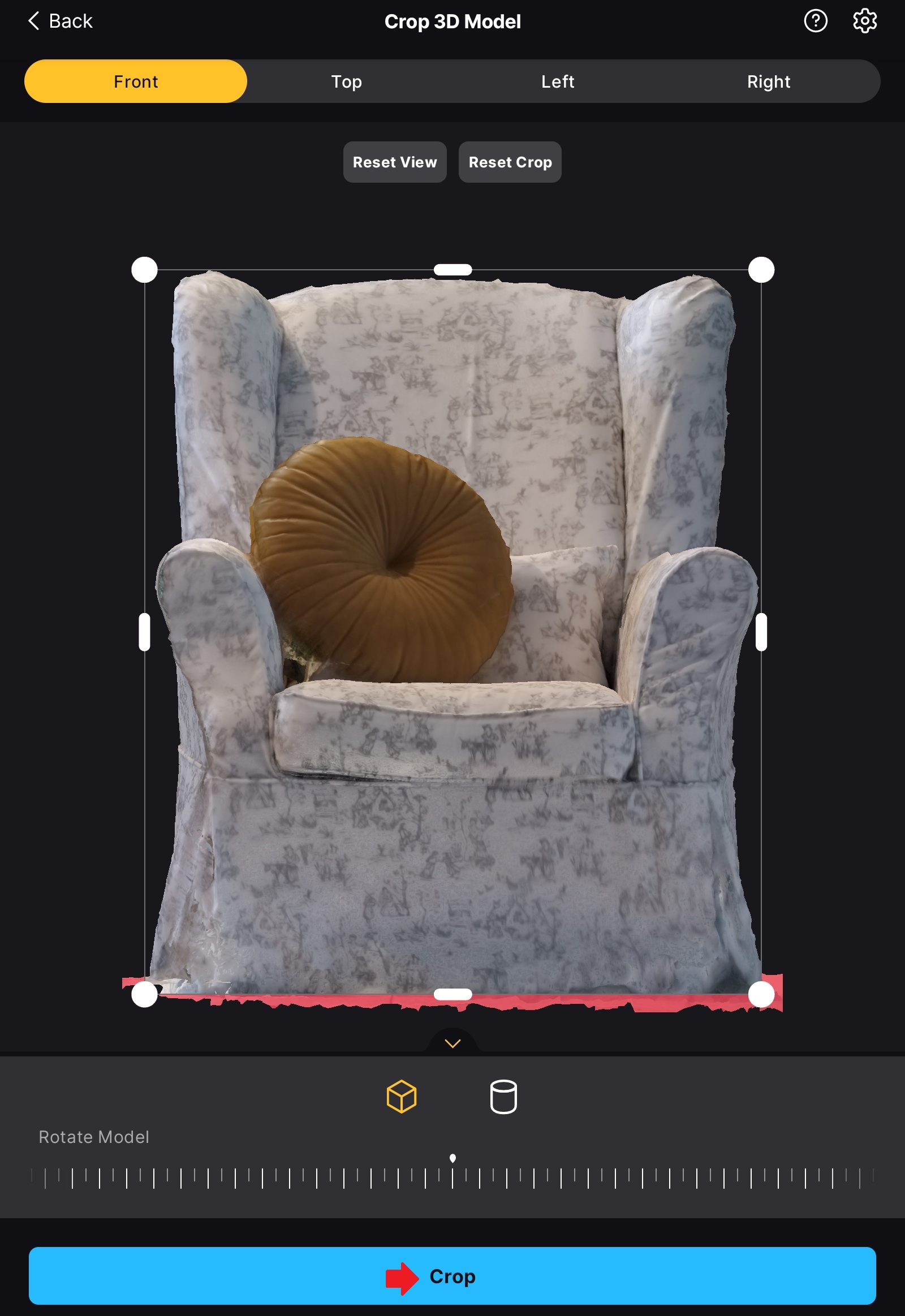 Comme précédemment, détourez l'objet pour retirer ce qui l'entoure. Relevez légèrement le rectangle pour supprimer le sol. Appuyez enfin sur "Crop".