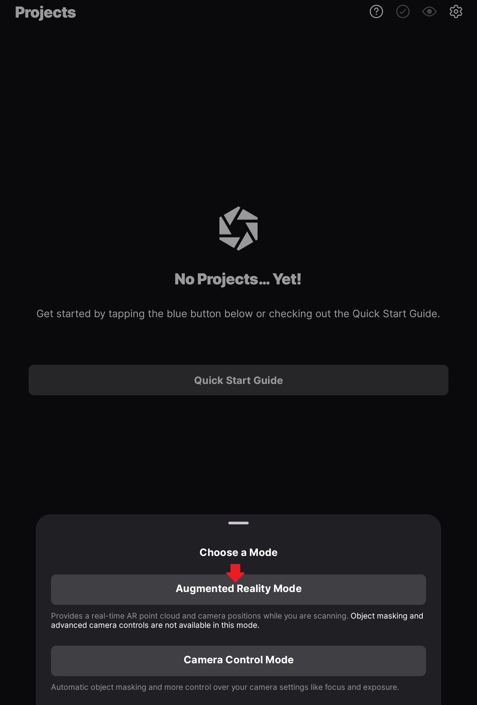 Sélectionnez "Augmented Reality Mode". Vous arrivez maintenant en mode caméra.