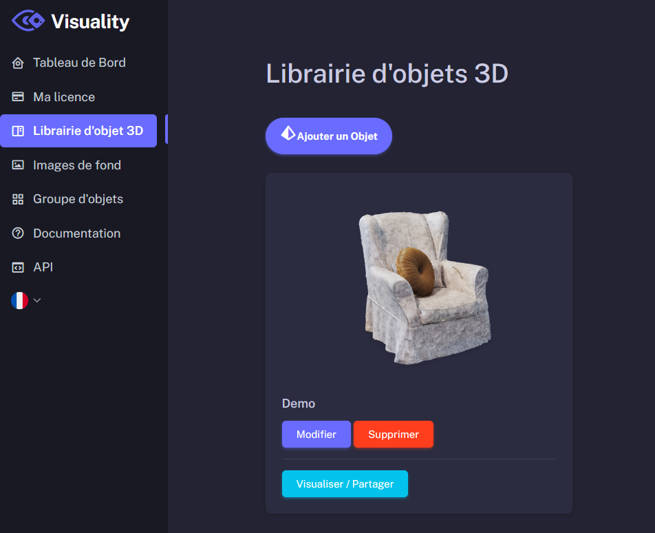 Rendez-vous dans votre librairie d’objets 3D puis cliquez sur le bouton "Ajouter un Objet".